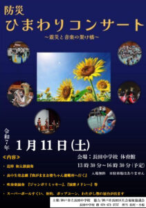 神戸と気仙沼をZoomで結び、互いに演奏を届け合う心温まる交流を実施しました。小椋教諭が玉津中学校勤務時に66回生とともに作詞・作曲した「充」を、気仙沼の子どもたちが阪神・淡路大震災から30年を迎える神戸へ向けて合唱し、想いをつなぎました。さらに長田中学校体育館では、運動部の生徒たちが地域の子どもたちのために縁日を運営。将来、避難所となる学校への心理的なハードルを下げることを目的とし、楽しさの中に防災の意義を感じられる取り組みとなりました。