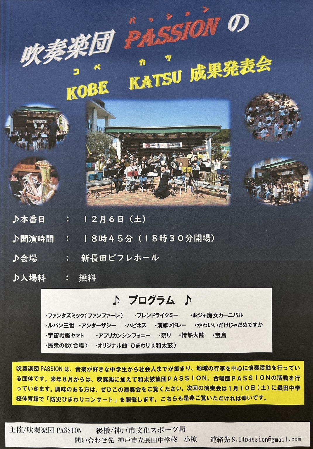 出演者: 吹奏楽団PASSION,神戸市立多聞東中学校吹奏楽部,神戸市立長田中学校吹奏楽部